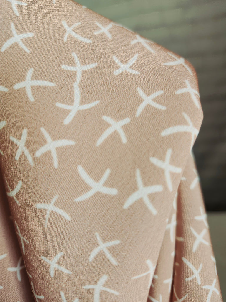 *Exclusive Design* Almond/Brown with Cream Design▪︎Polyester Crepe