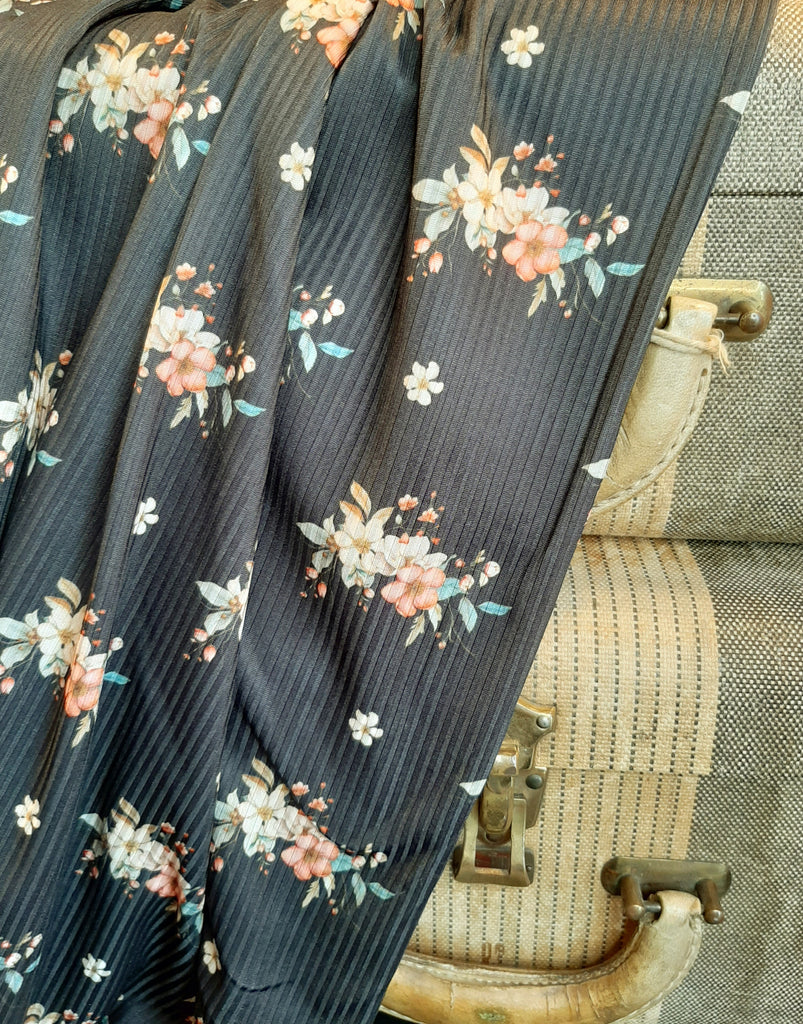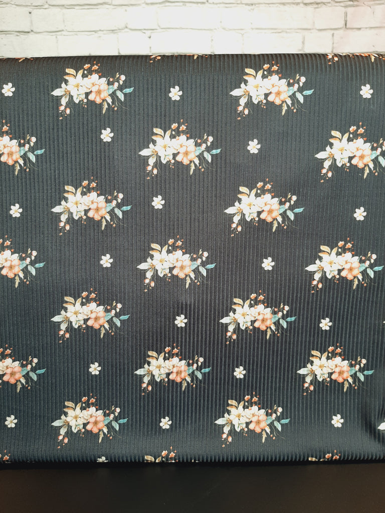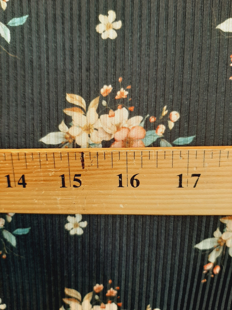 *Exclusive Design* Black with Cream & Pink Floral▪︎ Narrow Rib Knit