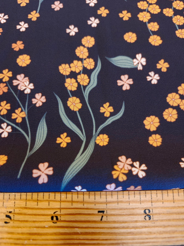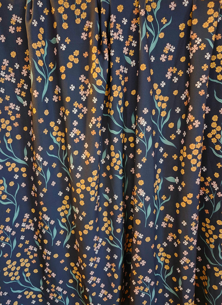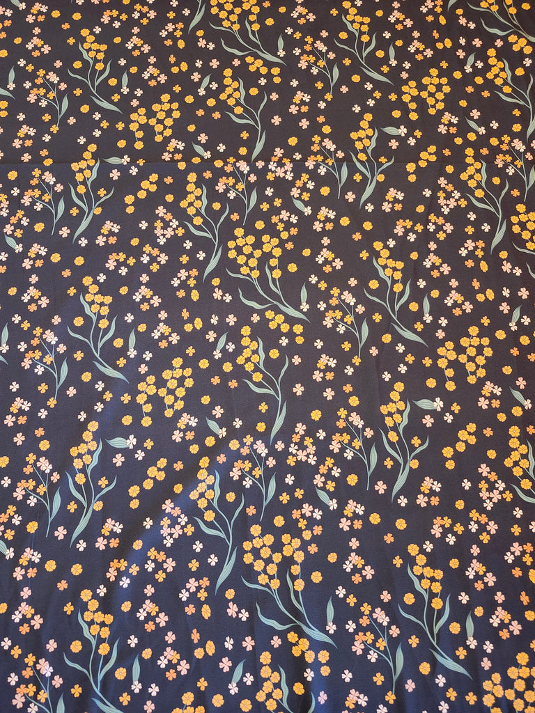 *Exclusive Design* Black with Gold & Pink Floral with Green Leaves▪︎Bubble Crepe