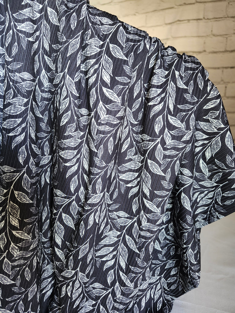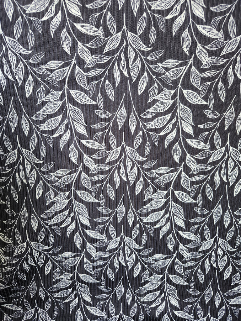 *Exclusive Design* Black with White Leaves▪︎Narrow Rib Knit