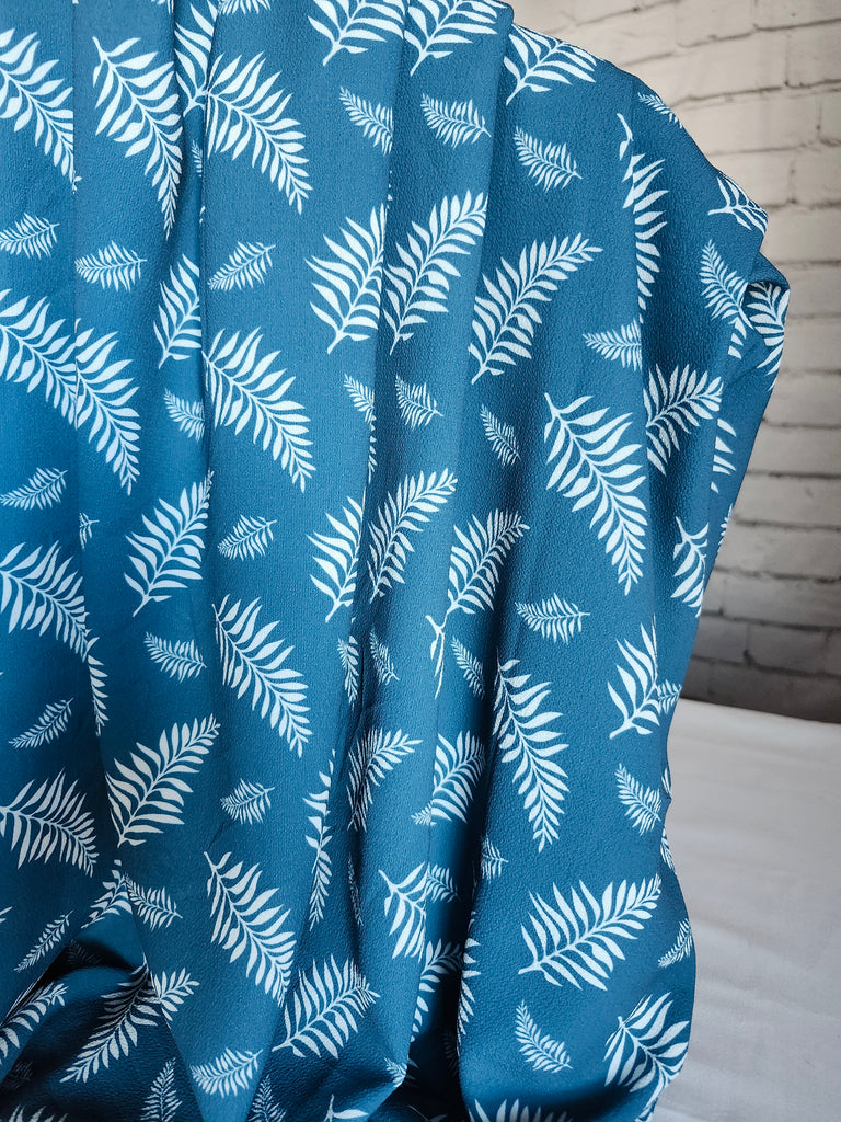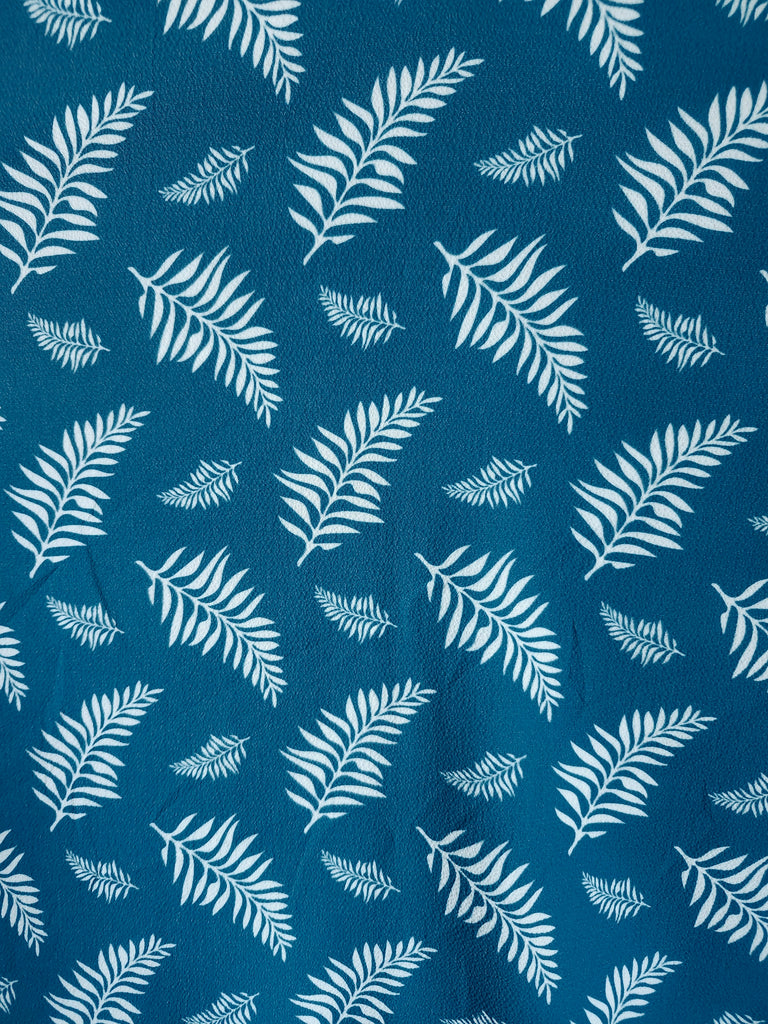 *Exclusive Design* Blue with White Leaves▪︎Bubble Crepe