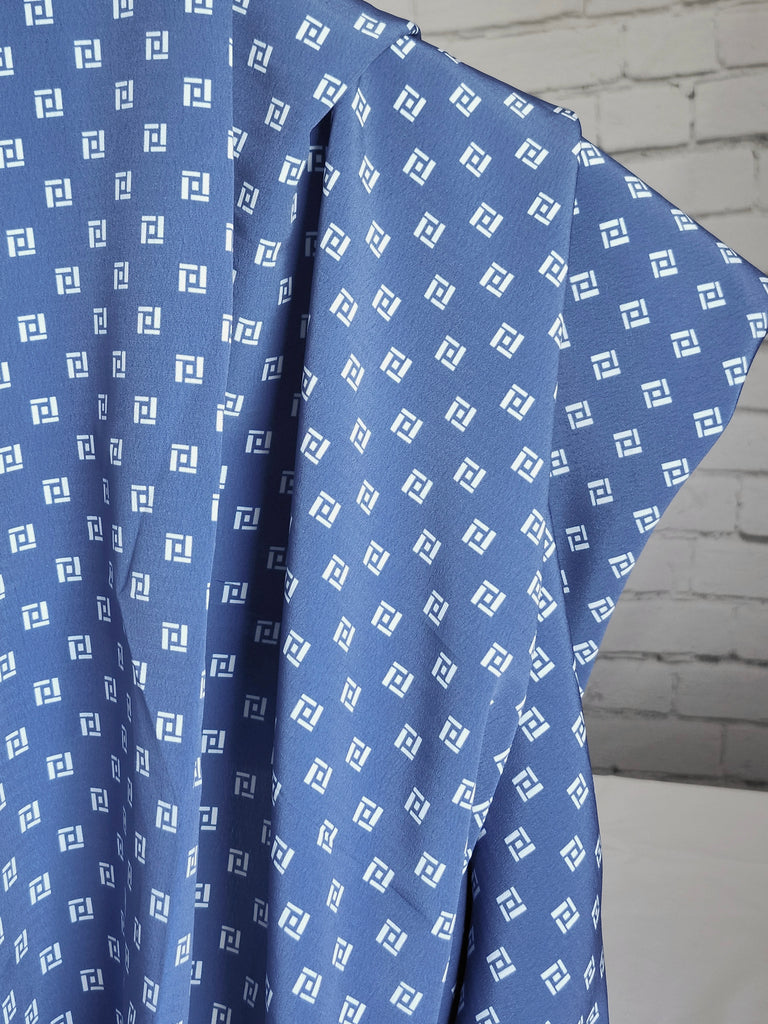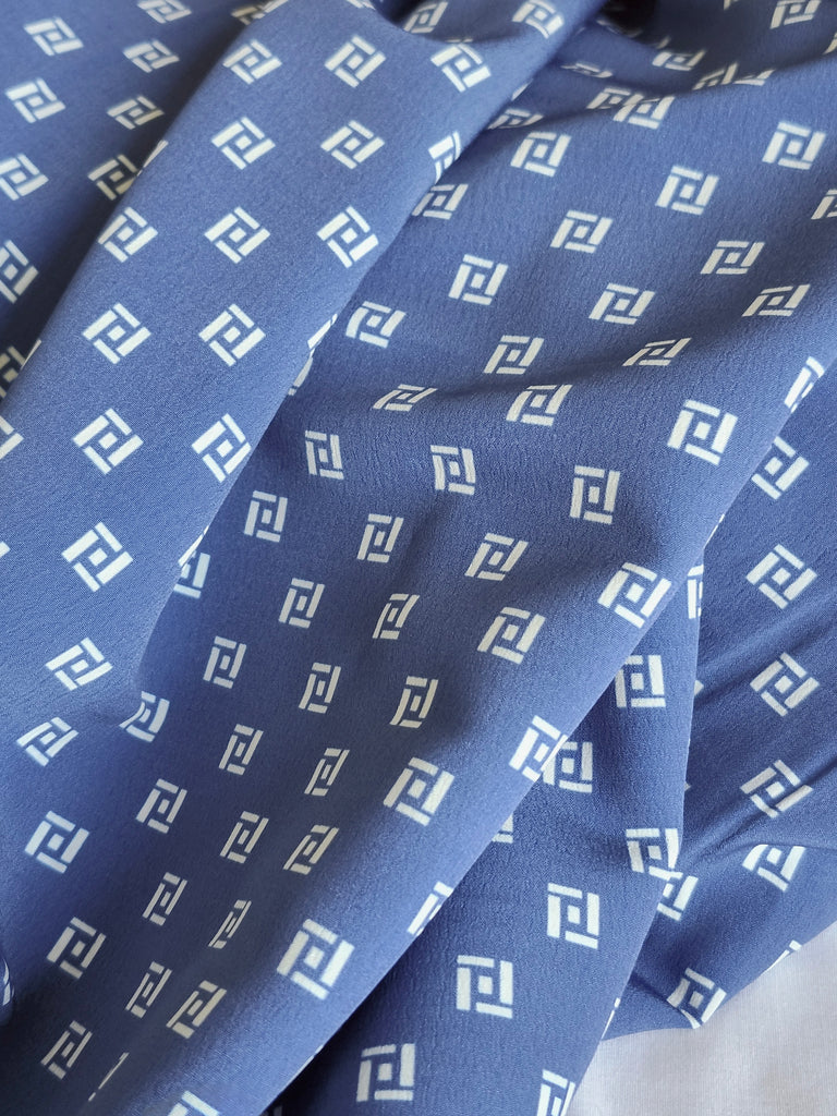 *Exclusive Design* Blue with White Squares▪︎Polyester Crepe