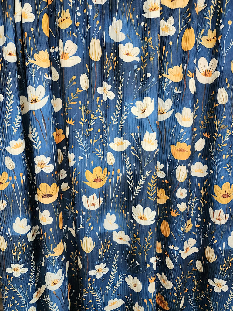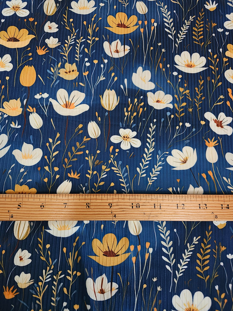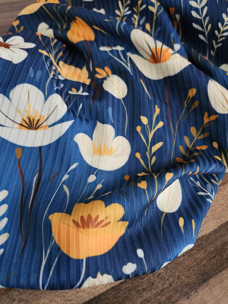 *Exclusive Design* Blue with Yellow & Cream Floral▪︎Narrow Rib Knit