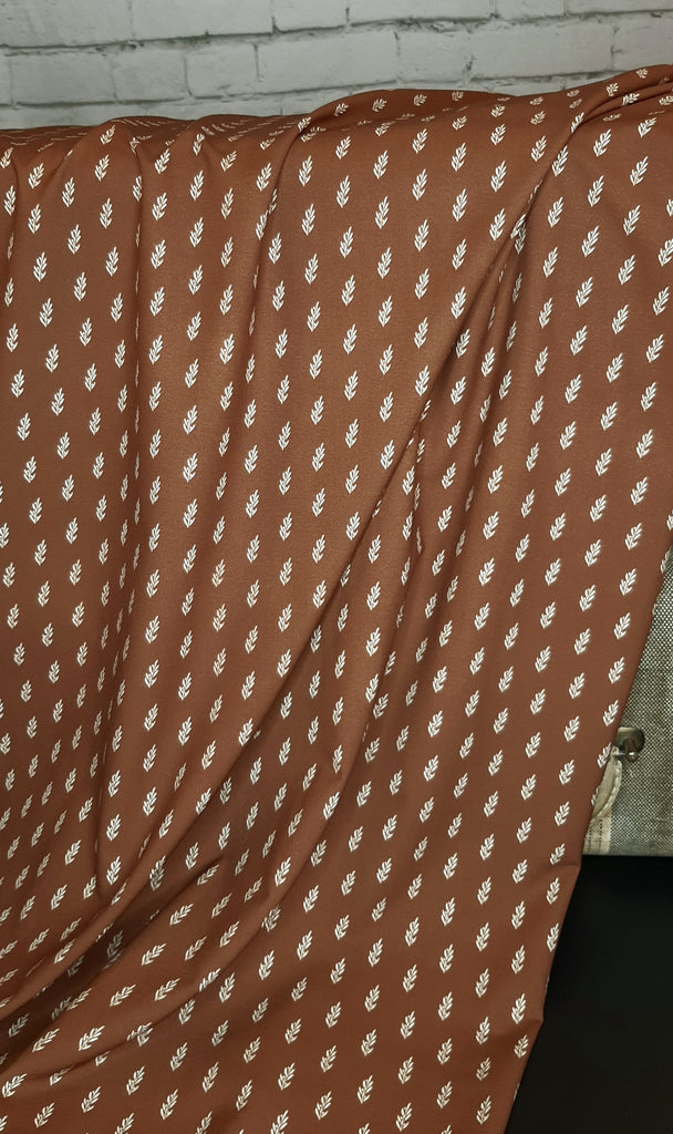 *Exclusive Design* Brown with Tiny Cream Leaf▪︎4 Way Stretch Poly
