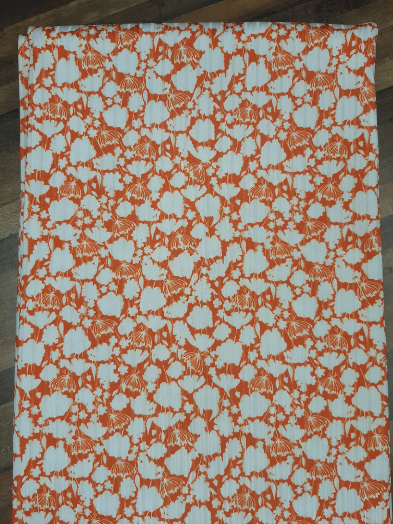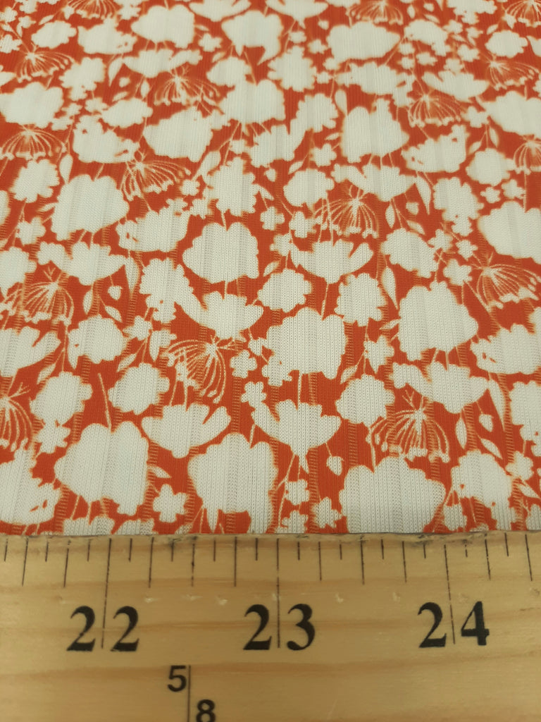 *Exclusive Design* Brunt Orange with White Floral Silhouette ▪︎ Wide Rib Knit