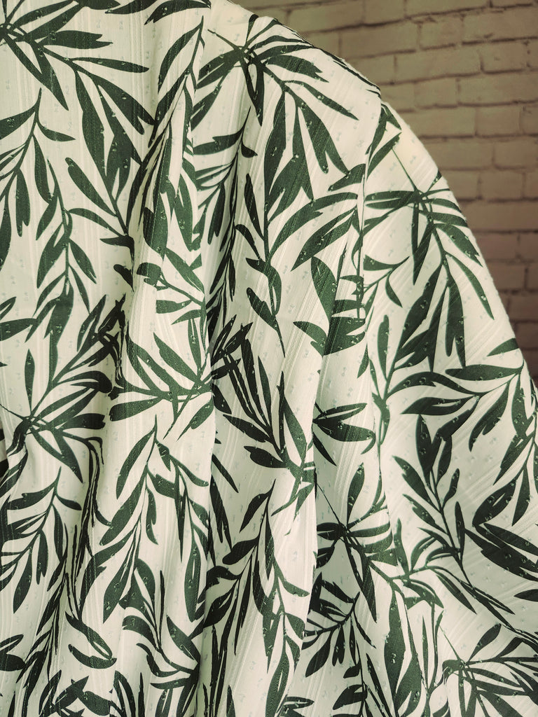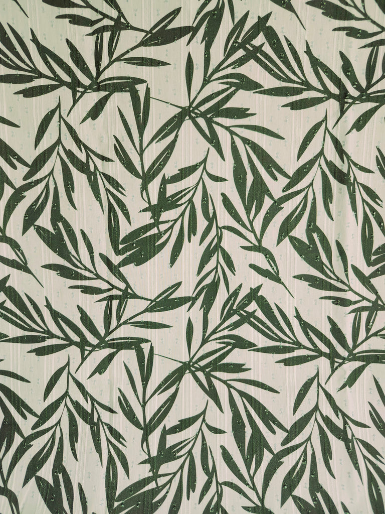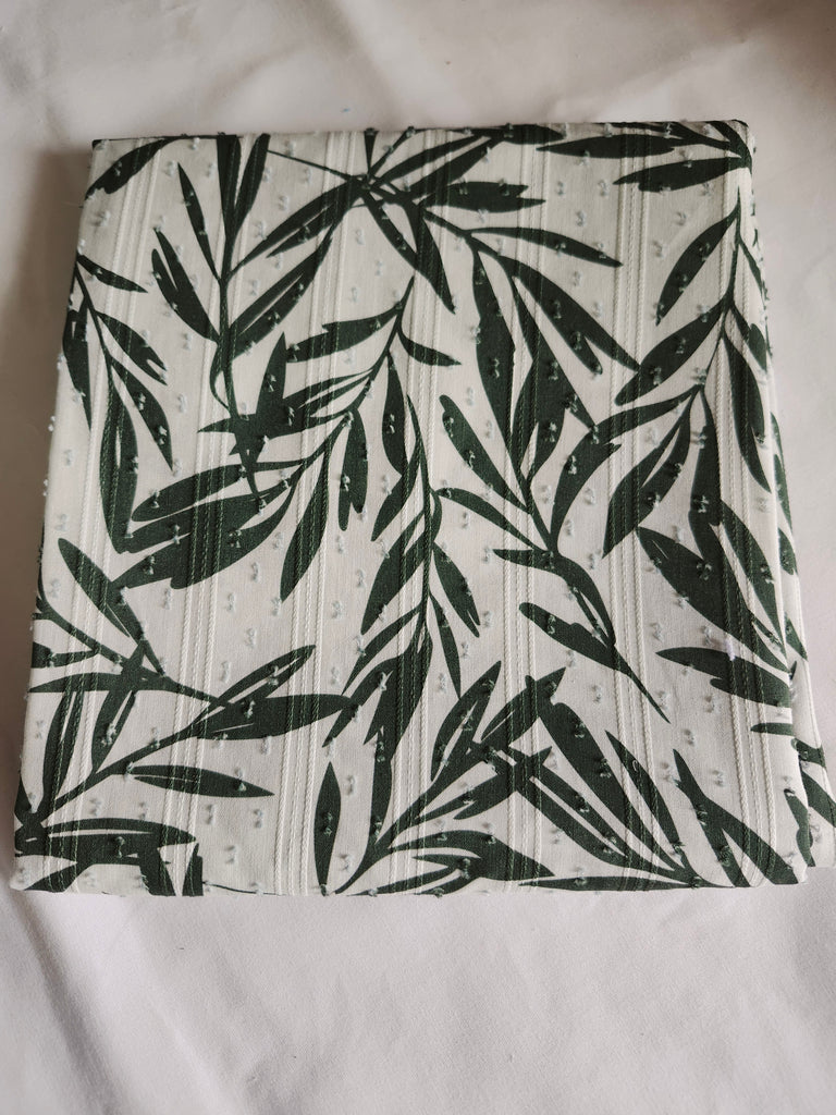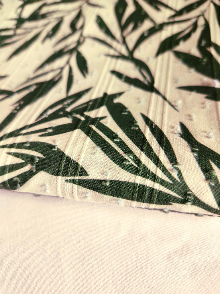 *Exclusive Design* Cream with Green Leaves▪︎ Cotton Swiss Dot with Stripe