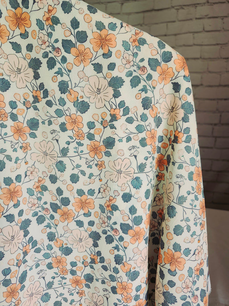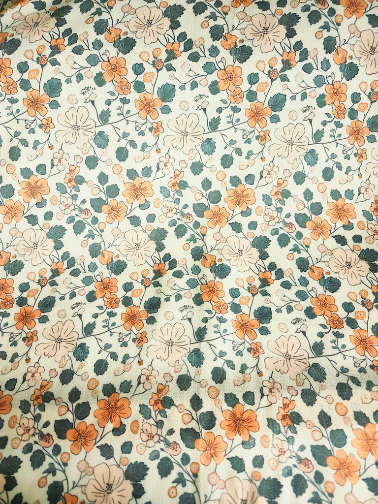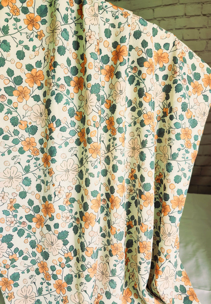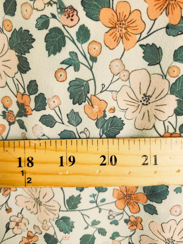 *Exclusive Design* Cream with Peach & Orange Floral▪︎Bubble Crepe
