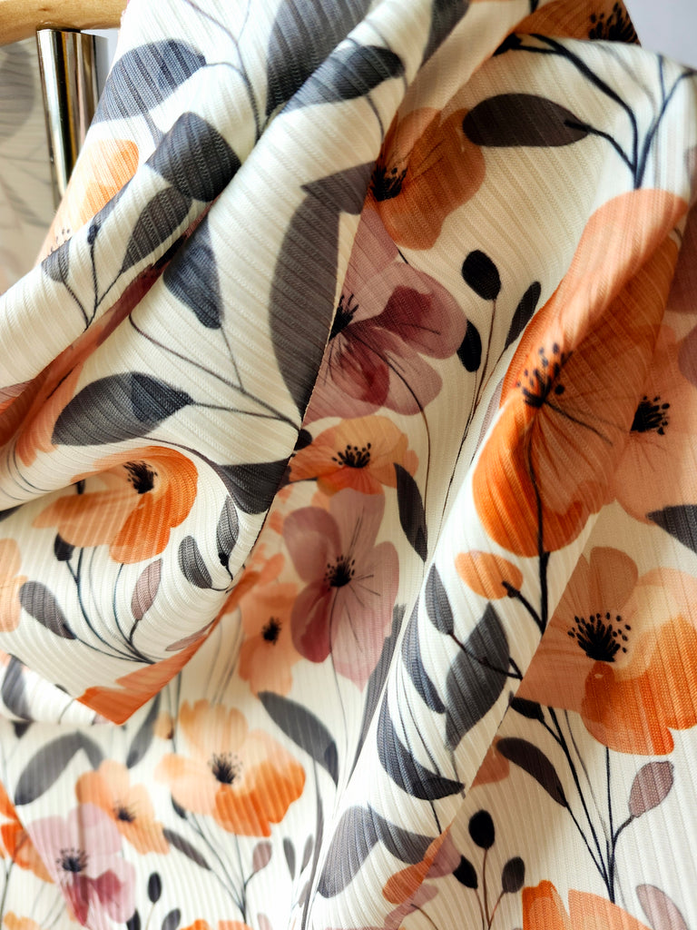THIS IS A LIGHTWEIGHT KNIT, SIMILAR TO DTY. IT HAS A SMOOTH, ALMOST SILKY FEEL WITH A RIB TEXTURE, NOT CLINGY. IT HAS STRETCH WITH GOOD RECOVERY. PERFECT FOR DRESSES, SKIRTS OR A TOP.