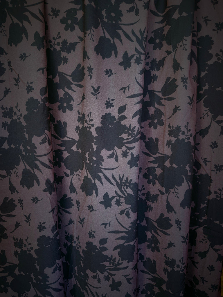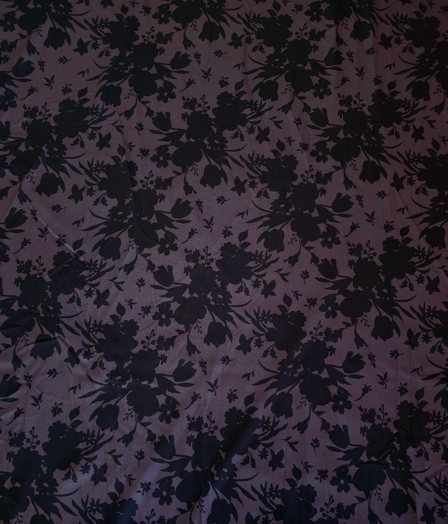 *Exclusive Design* Dark Mauve/Purple with Black Silhouette Floral▪︎Bubble Crepe
