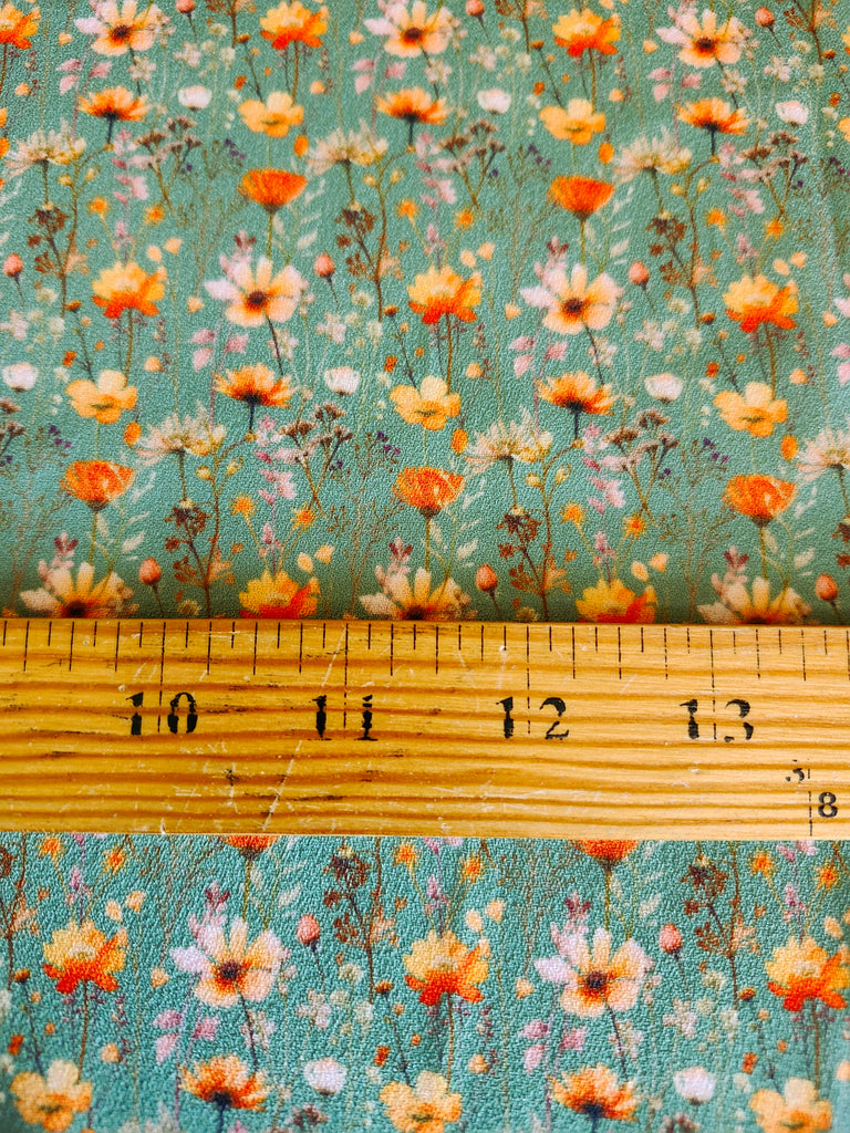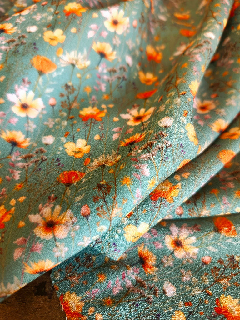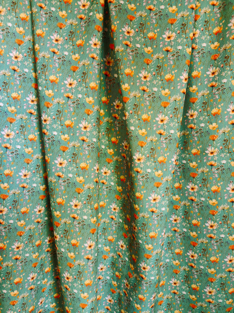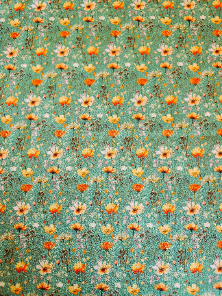 *Exclusive Design* Green with Orange Floral▪︎ Pebble Crepe Polyester