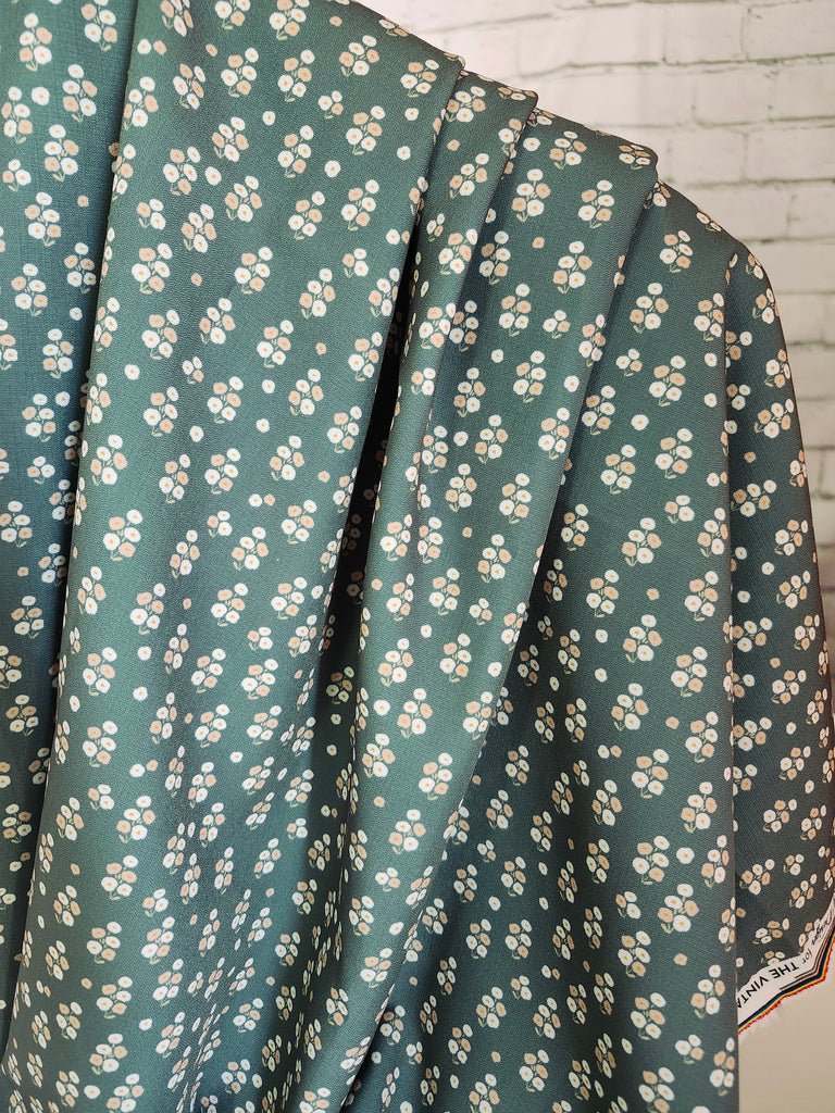 *Exclusive Design* Green with Petite Floral Cluster▪︎Poly Slub