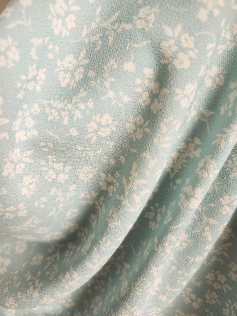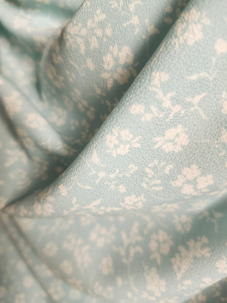 *Exclusive Design* Light Blue with Tiny White Flower▪︎Bubble Crepe