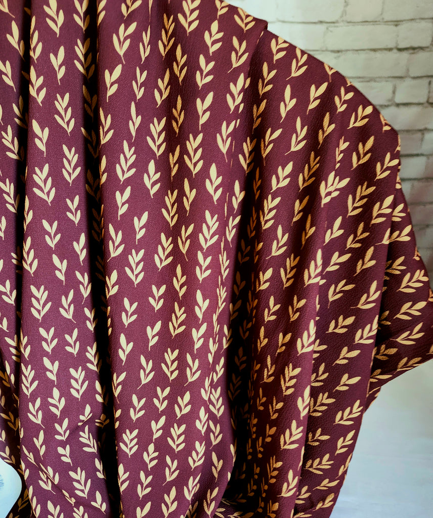 *Exclusive Design* Maroon with Gold Leaf Design▪︎Bubble Crepe