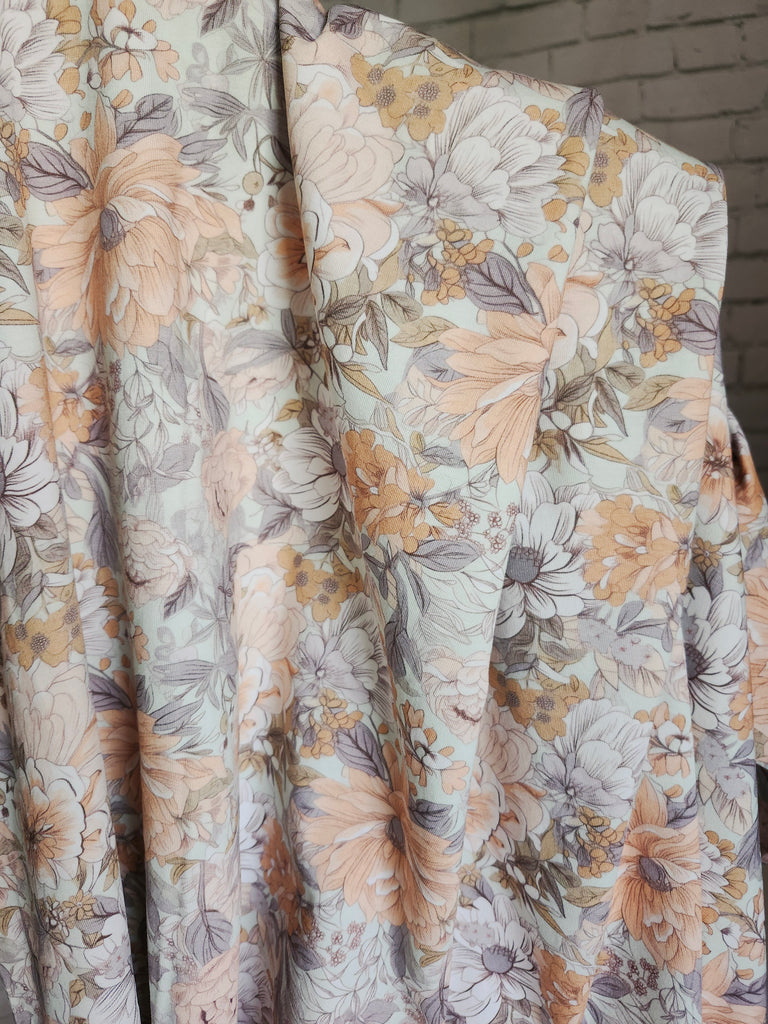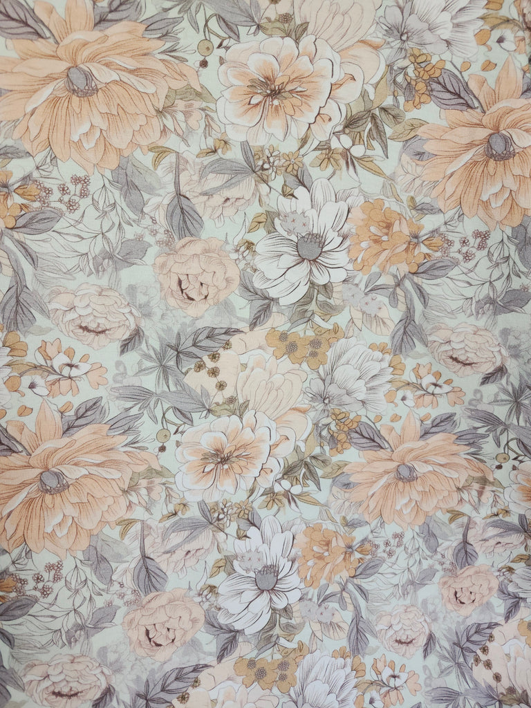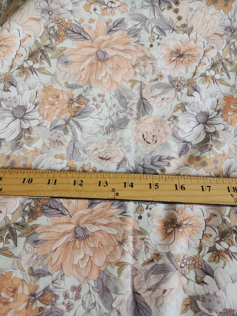 *Exclusive Design* Mint with Soft Orange & Cream Floral▪︎Cotton Spandex