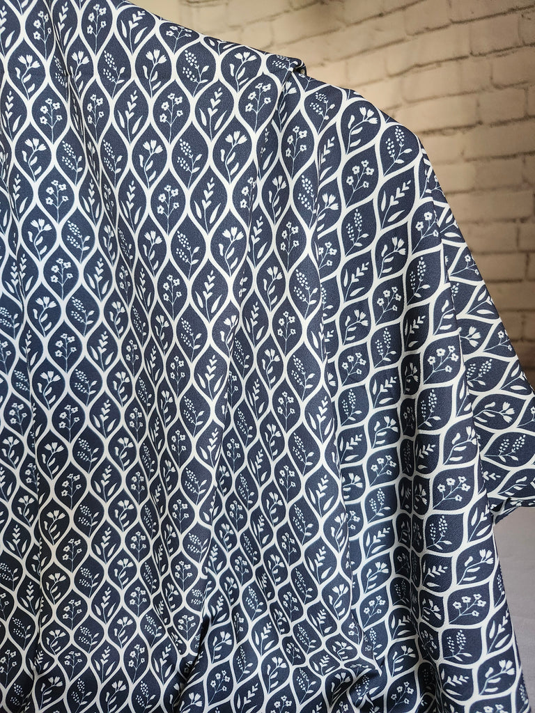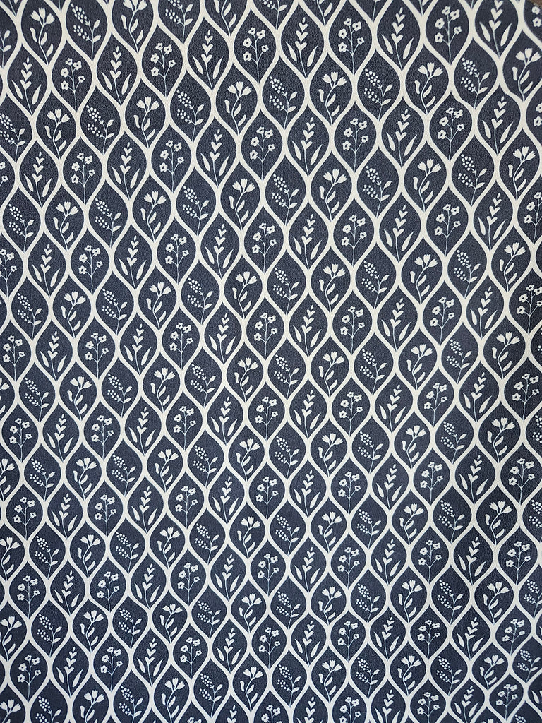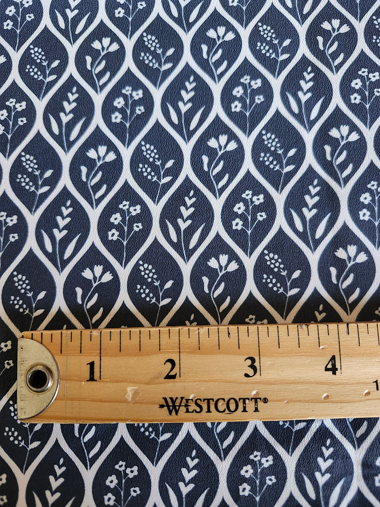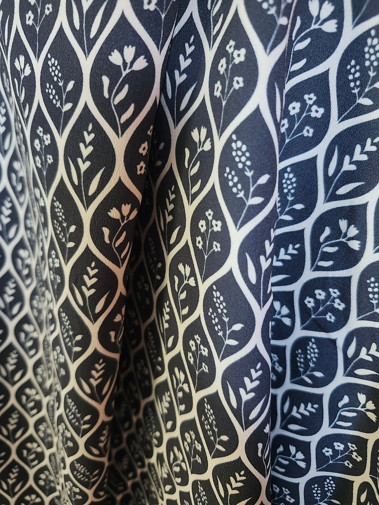 *Exclusive Design* Navy with Creamy White Floral & Geometric Design▪︎Crepe de Chine