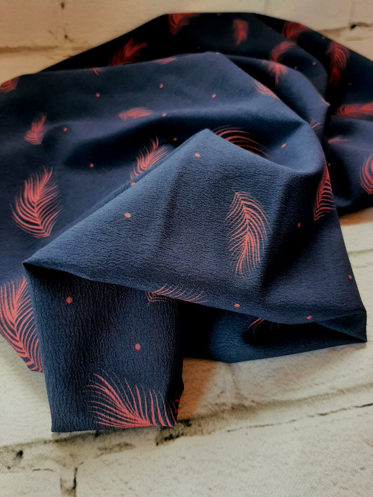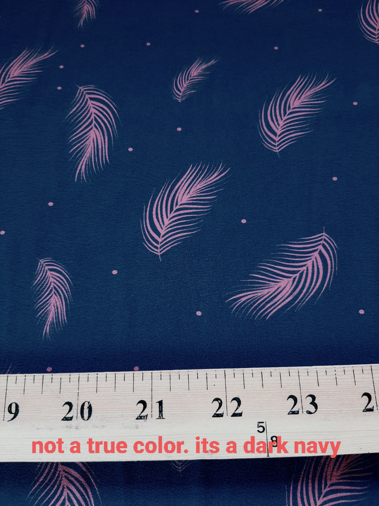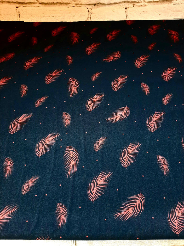 *Exclusive Design* Navy with Pink Feather Design▪︎ 4 Way Stretch Polyester