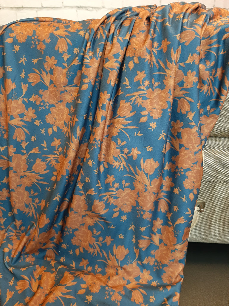 *Exclusive Design* Navy with Rusty Brown Floral▪︎ Single Brushed Poly Knit