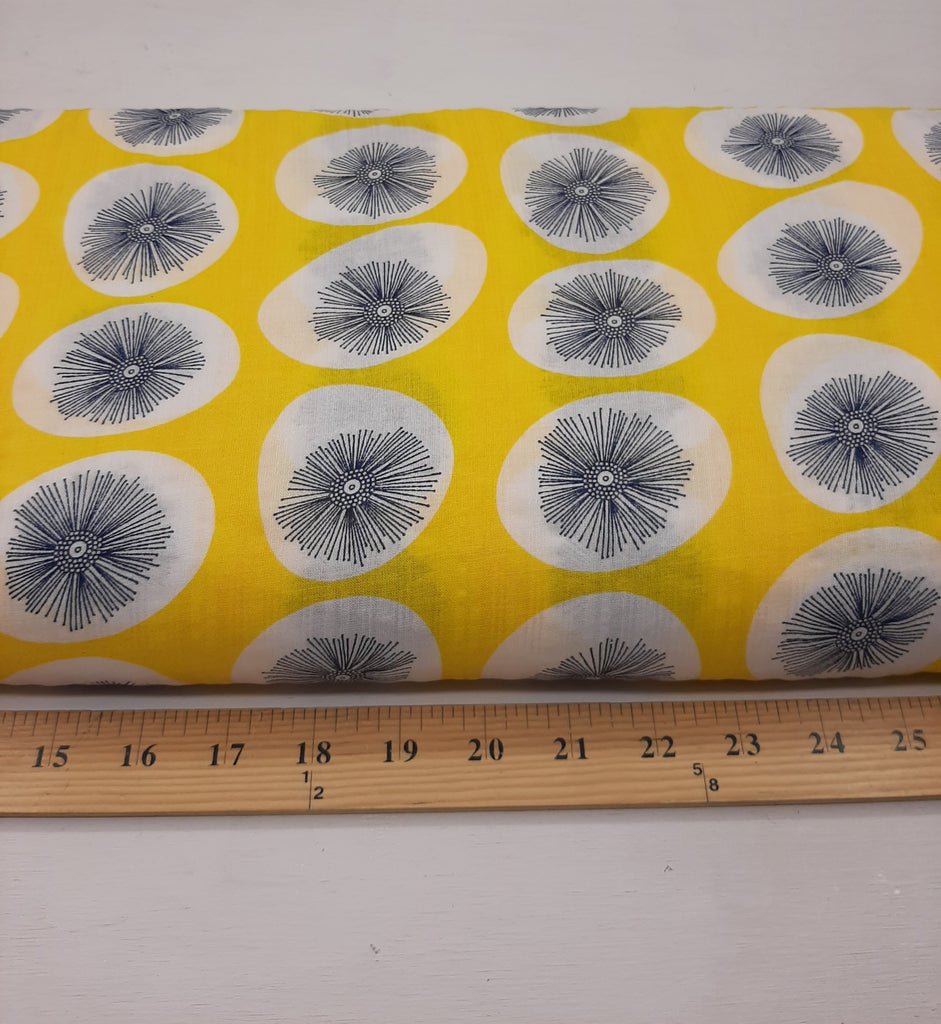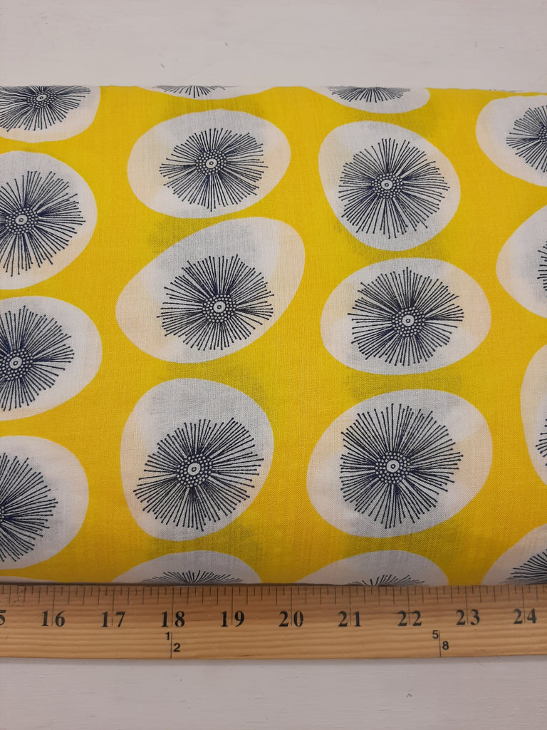 *CLEARANCE* Lemon Yellow with Navy Floral Outline▪︎Cotton/Rayon