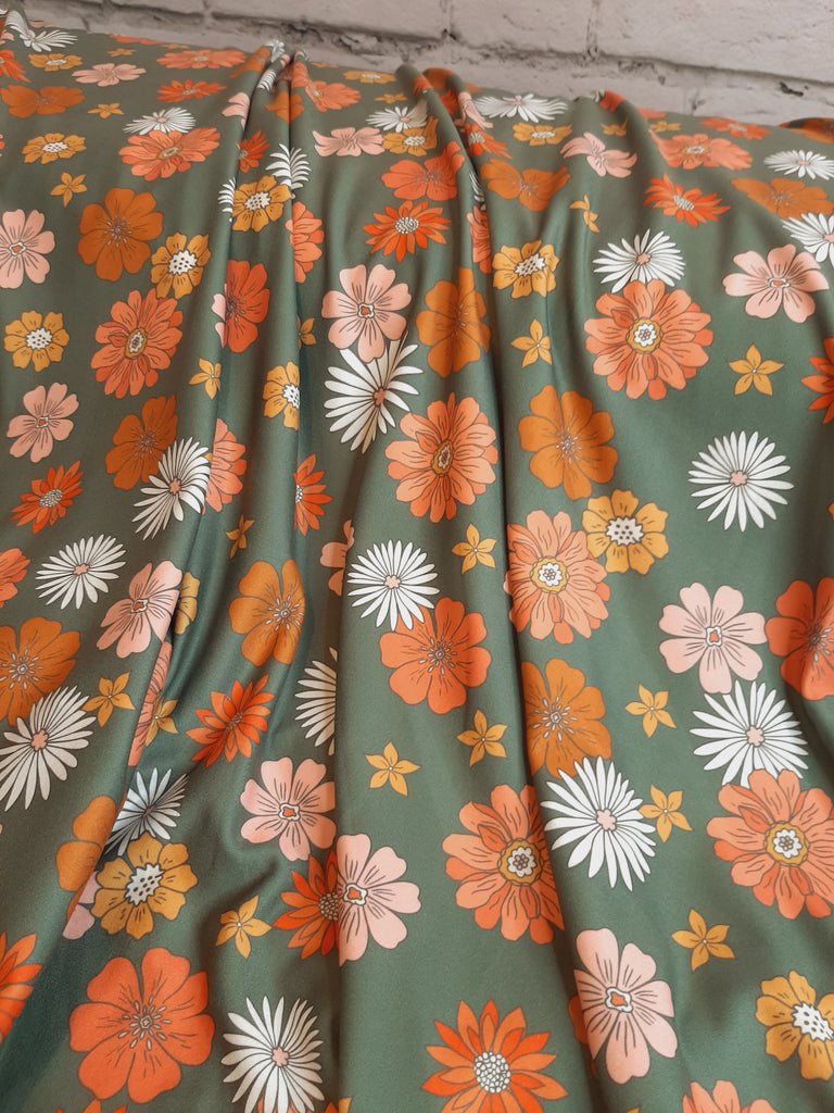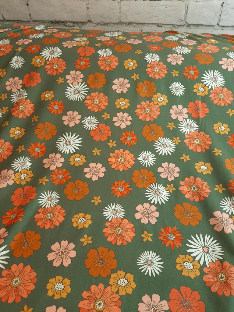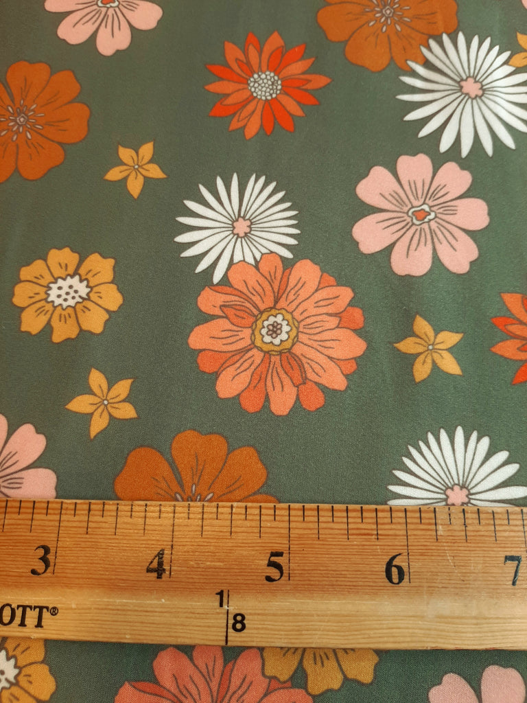 *Exclusive Design* Green with Fall Flowers▪︎Single Brushed Poly Knit