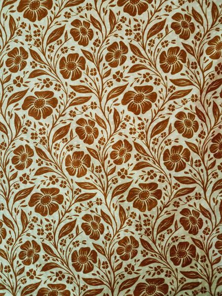 *Exclusive Design* Brown with Tiny Cream Leaf▪︎4 Way Stretch Poly