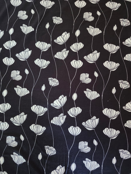 HAS A BUTTERY SOFT FEEL ON BOTH SIDES. 4 WAY STRETCH WITH GREAT RECOVERY. PERFECT FOR DRESSES, SKIRTS, TOPS OR A SWADDLE BLANKET.