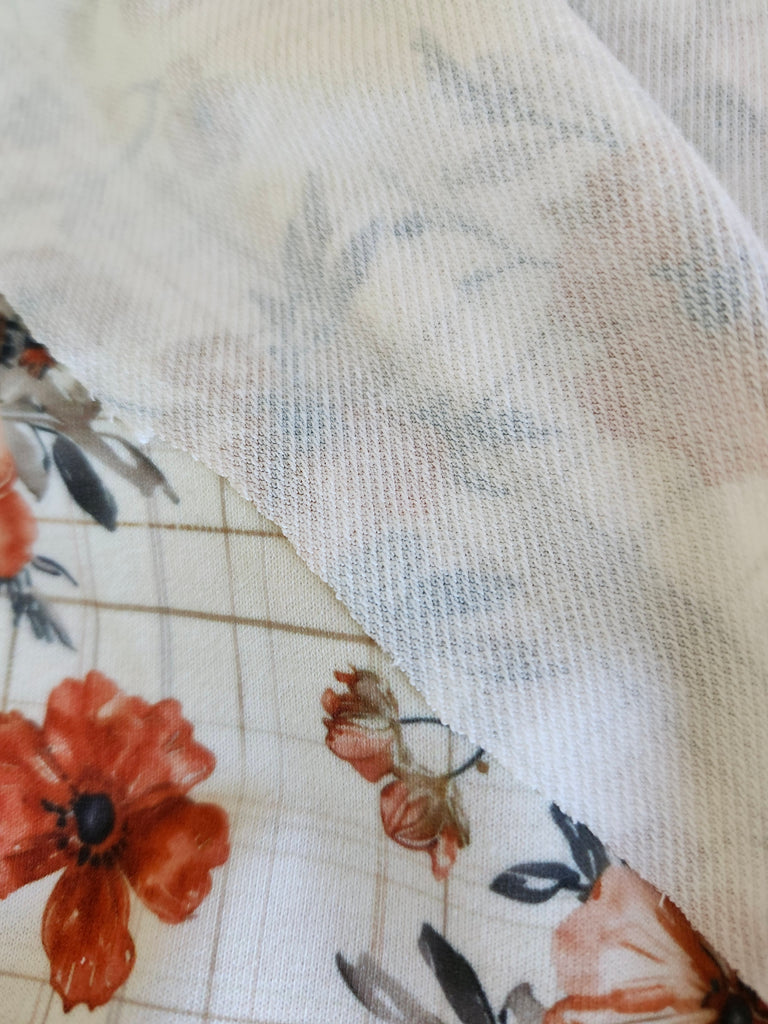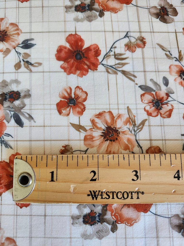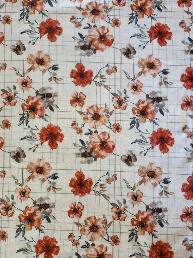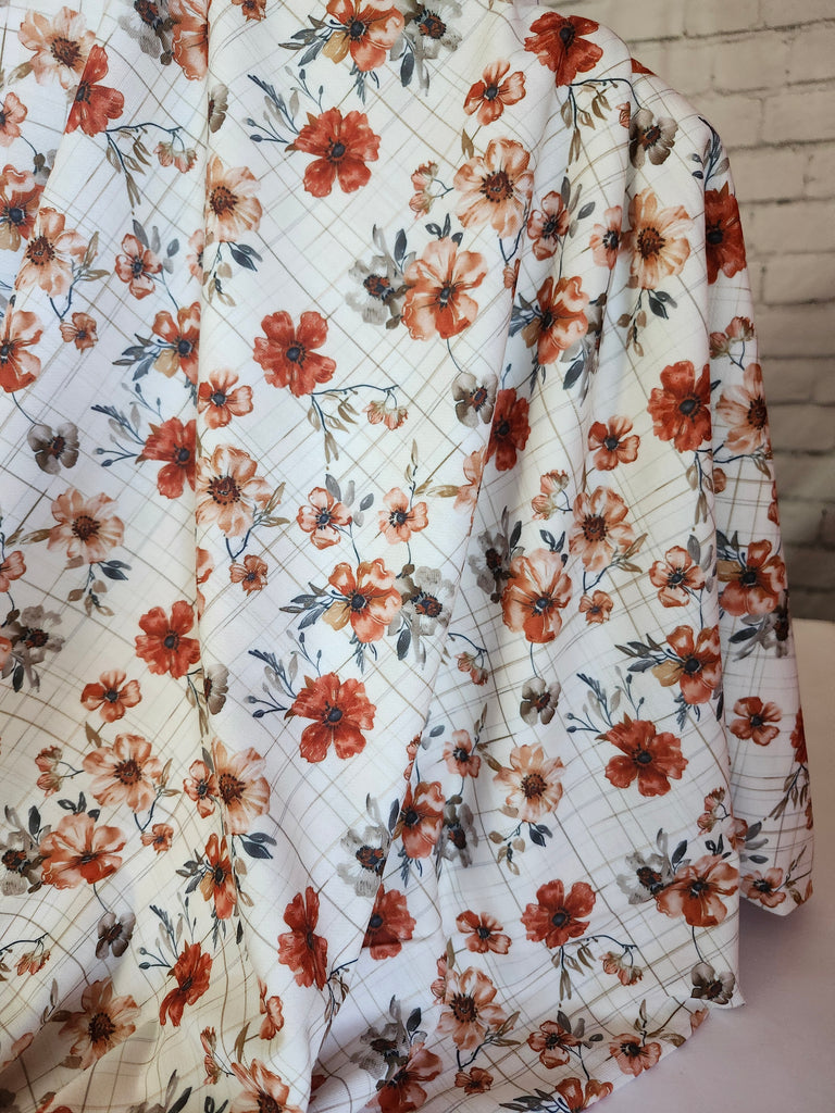 *Exclusive Design* Cream with Orange Floral on Tan Plaid▪︎French Terry Knit