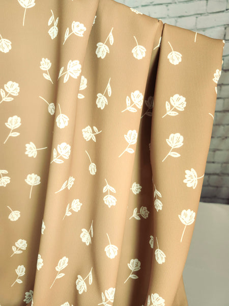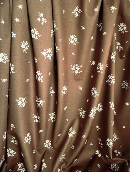 New *Exclusive Design* Brown with Cream Floral Clusters▪︎ Polyester Slub