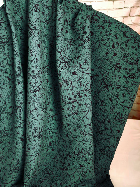 New *Exclusive Design* Green with Black Outline Floral▪︎ Pinstripe Polyester