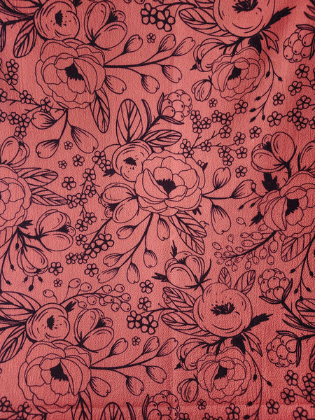 New *Exclusive Design* Rouge Pink with Black Outline Floral▪︎Bubble Crepe
