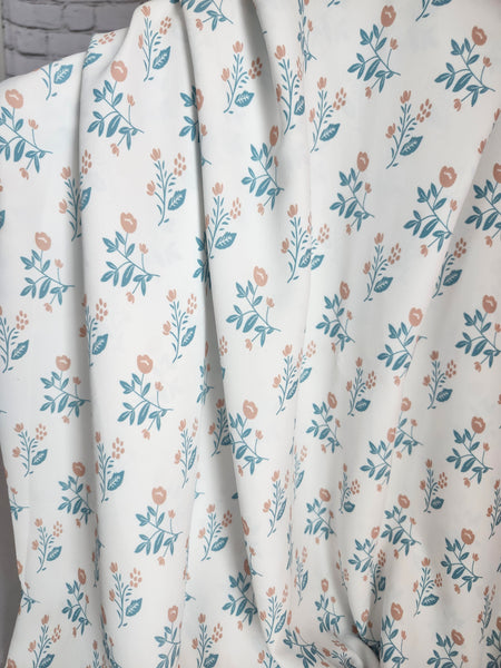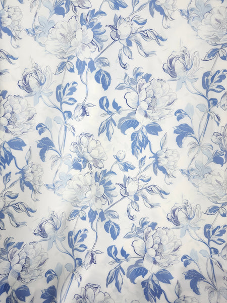 New *Exclusive Design* White with Blue Floral Clusters▪︎ Double Brushed Poly