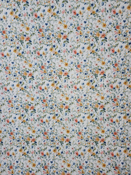 New * Exclusive Design* Dainty Spring Floral on White▪︎Variegated Rib Knit