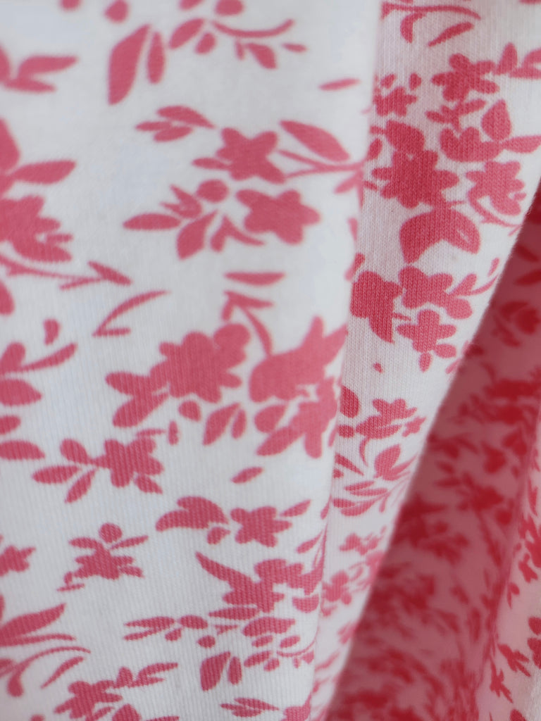 New *Exclusive Design* White with Bright Pink Floral Silhouette▪︎Cotton Spandex