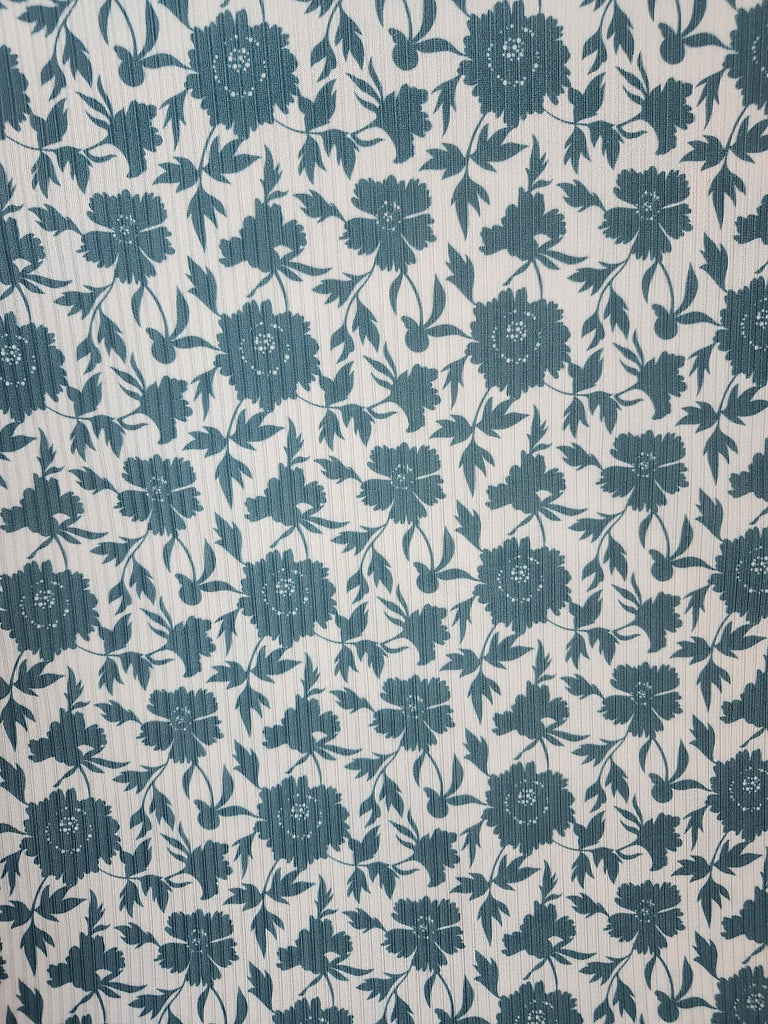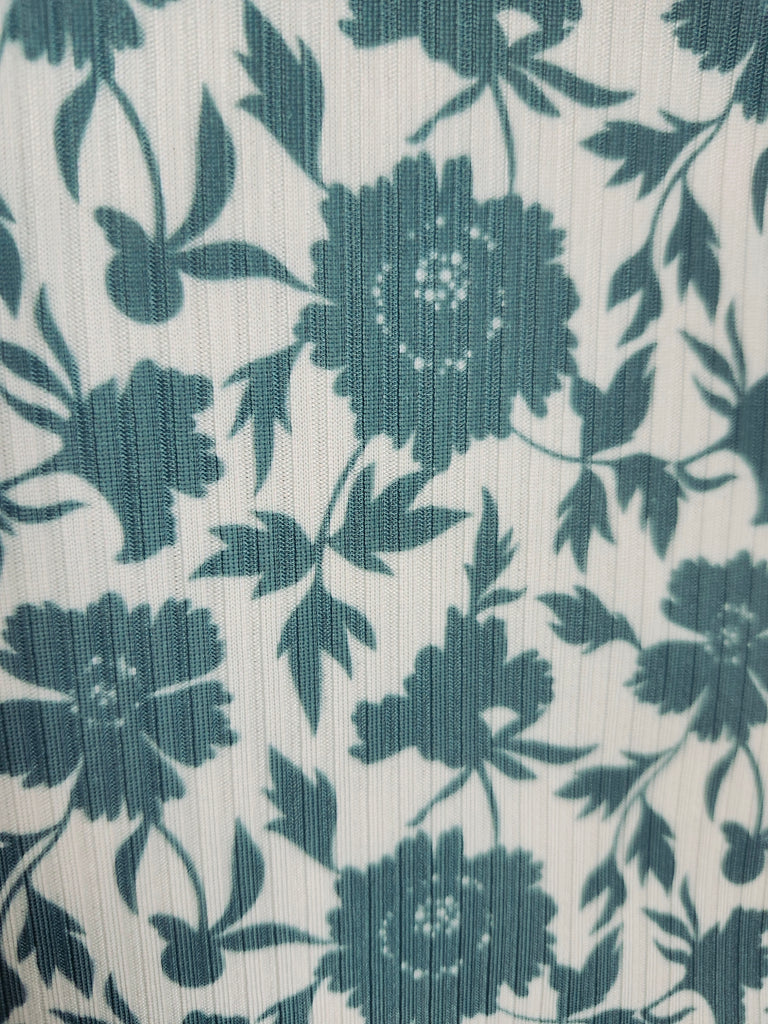 New *Exclusive Design* Green Floral on White▪︎Narrow Rib Knit