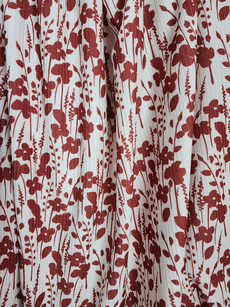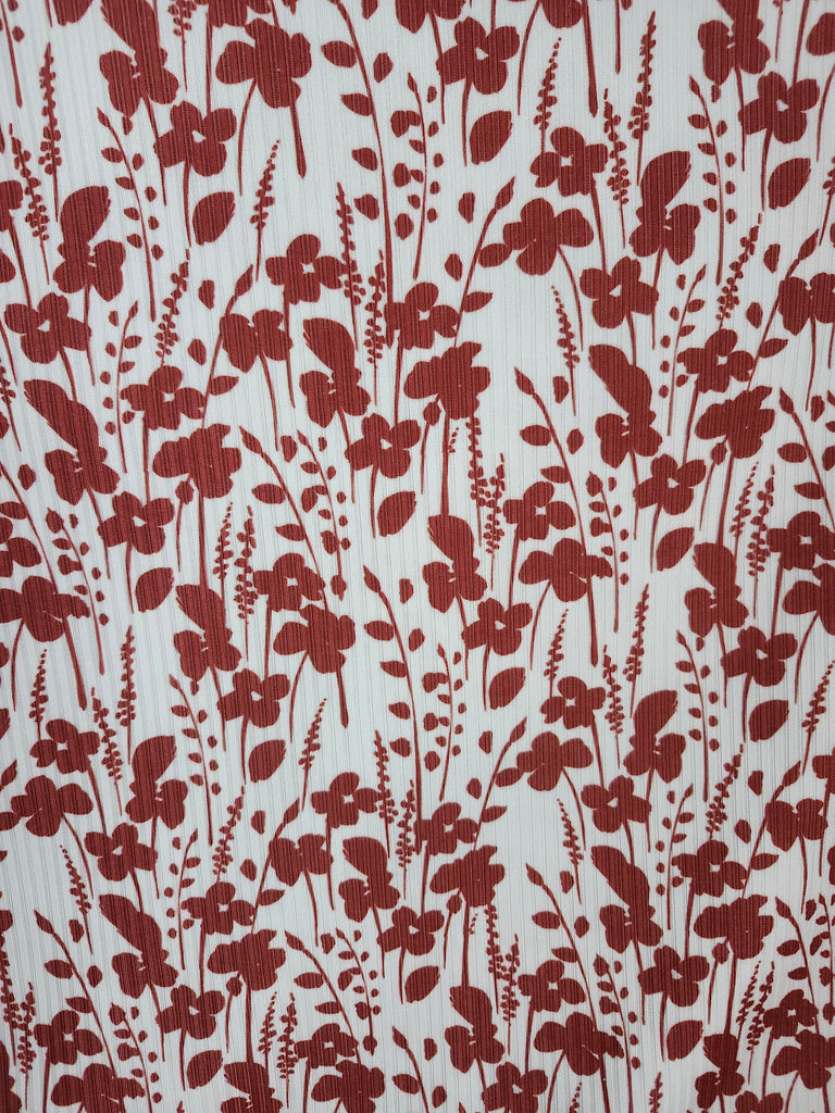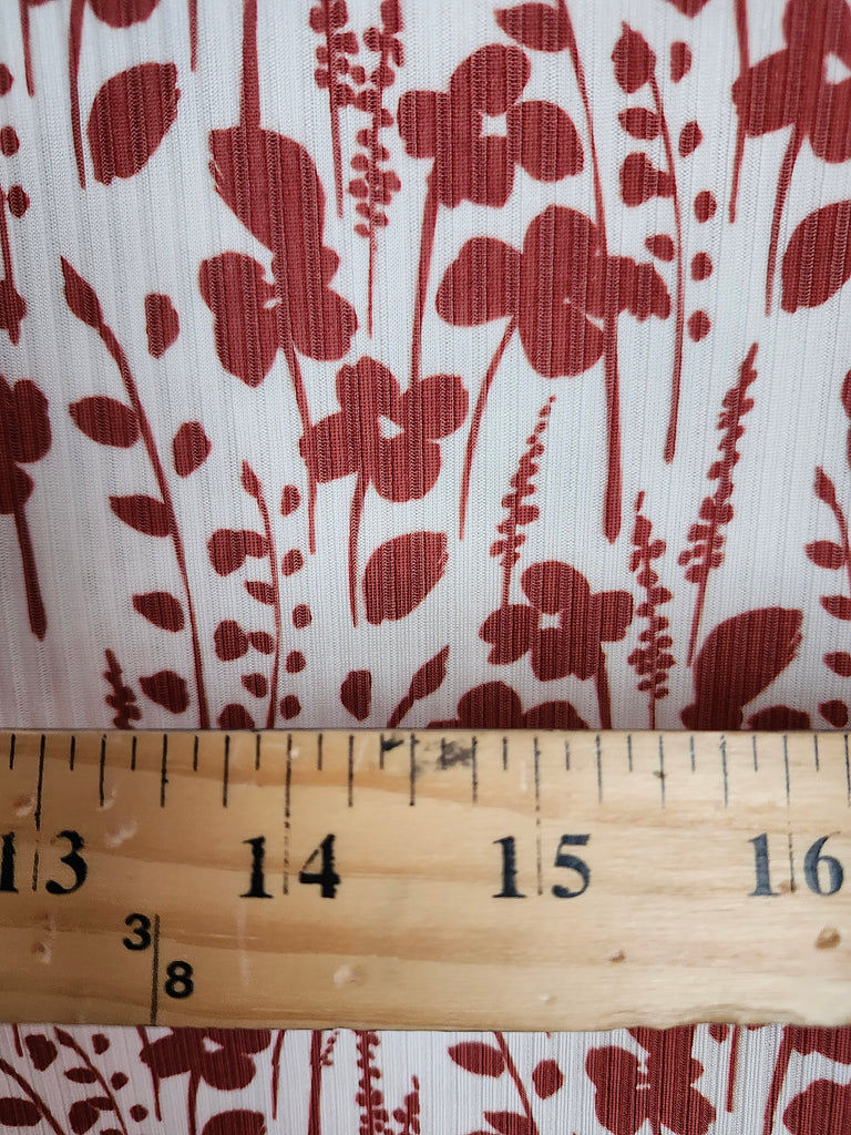 New *Exclusive Design* Rusty Red Silhouette Floral on Cream▪︎ Narrow Rib Knit