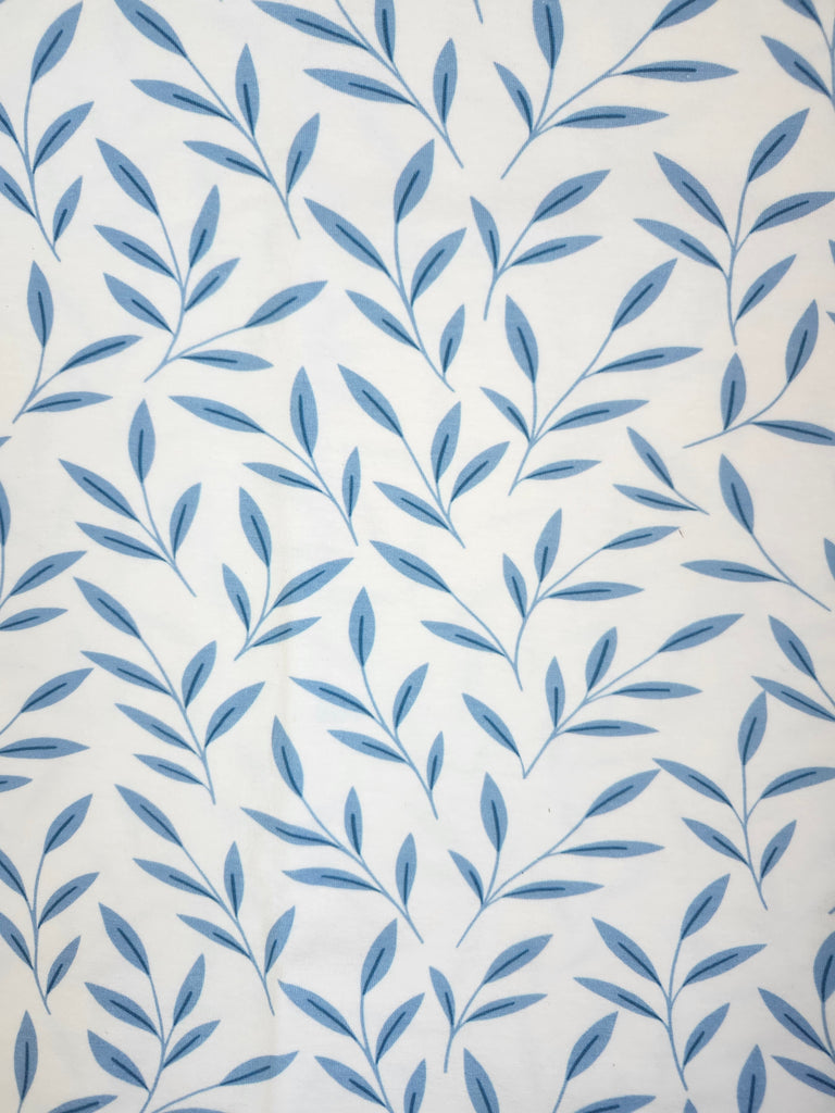 New *Exclusive Design* White with Blue Leaves▪︎Cotton Spandex