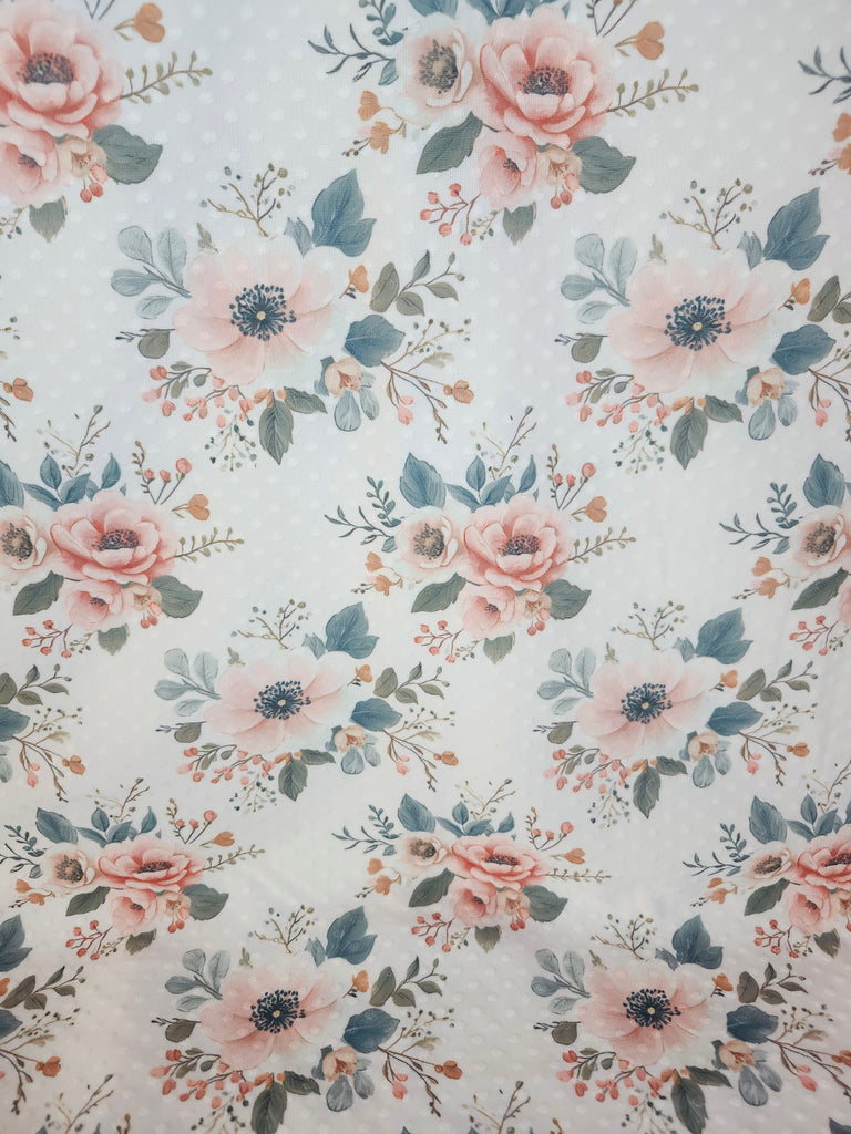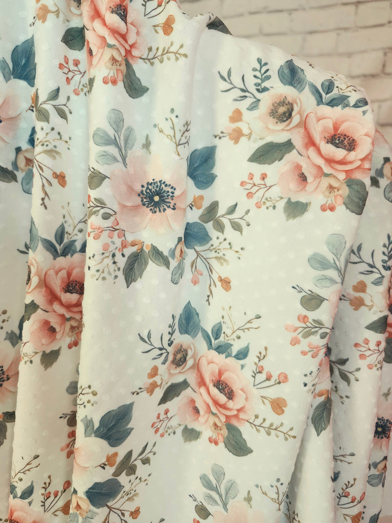 New *Exclusive Design* White with Peach Floral▪︎Swiss Dot Knit