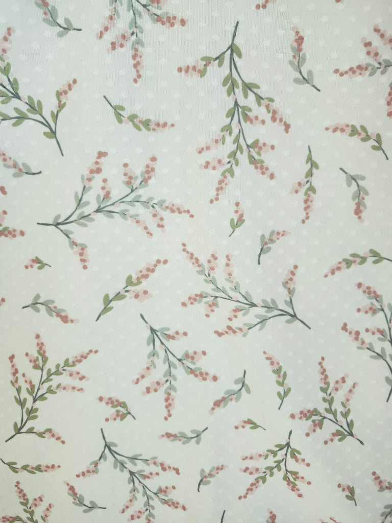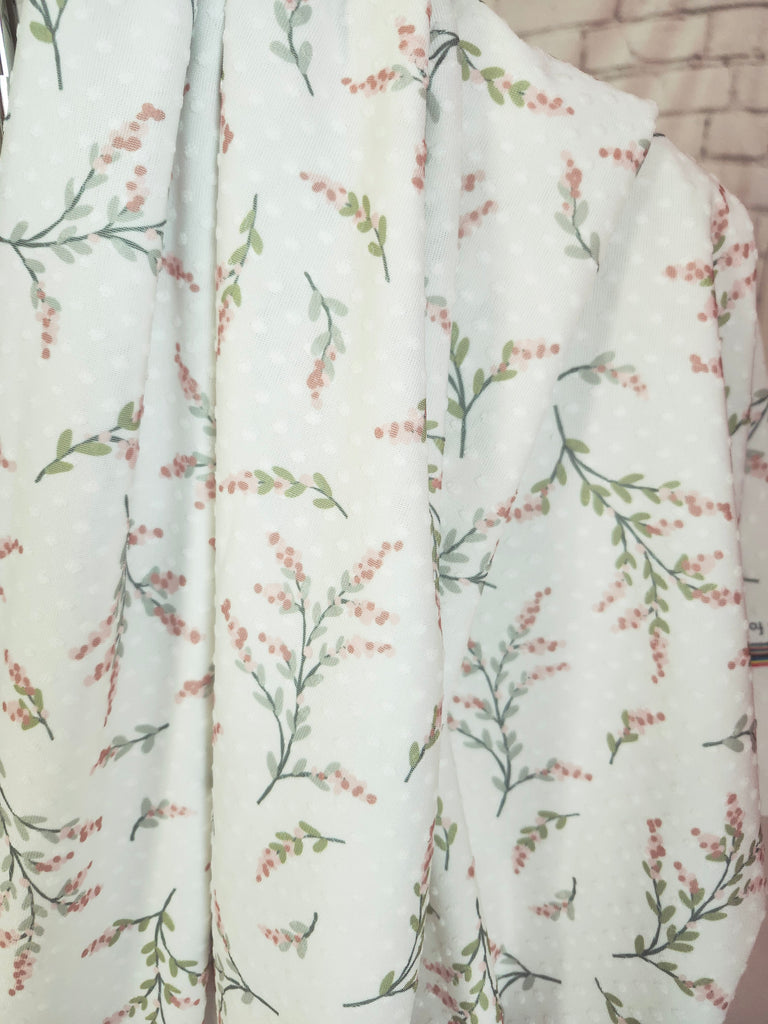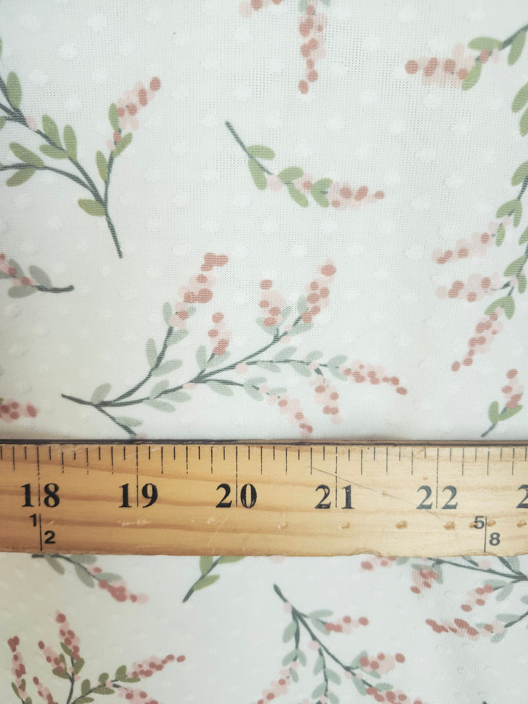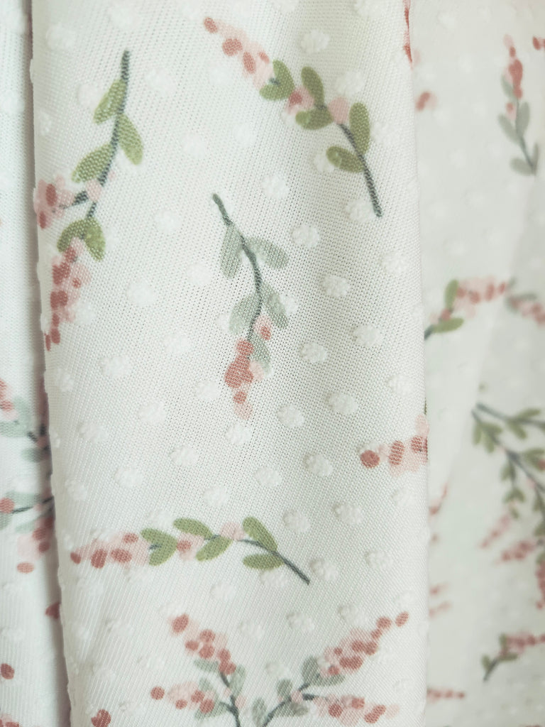 New *Exclusive Design* White with Peach & Green Stems▪︎Swiss Dot Knit